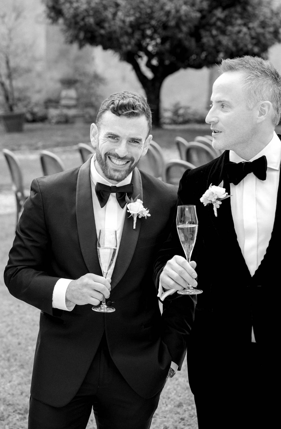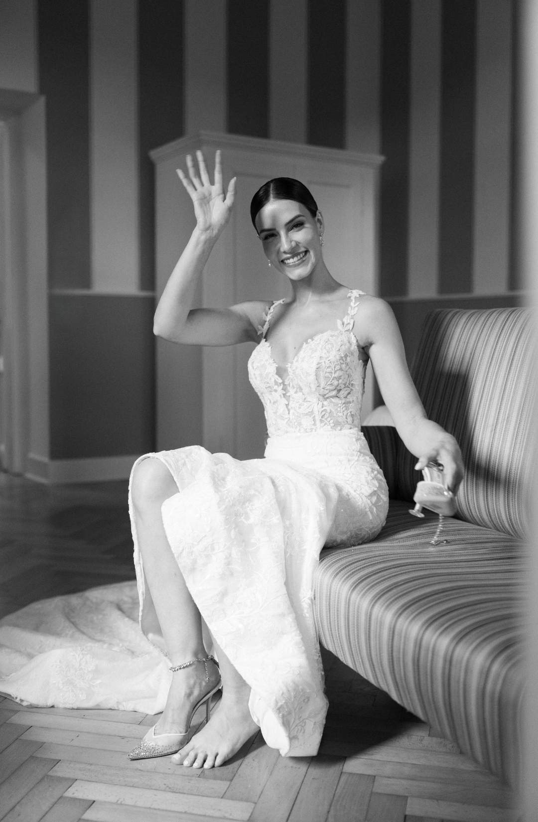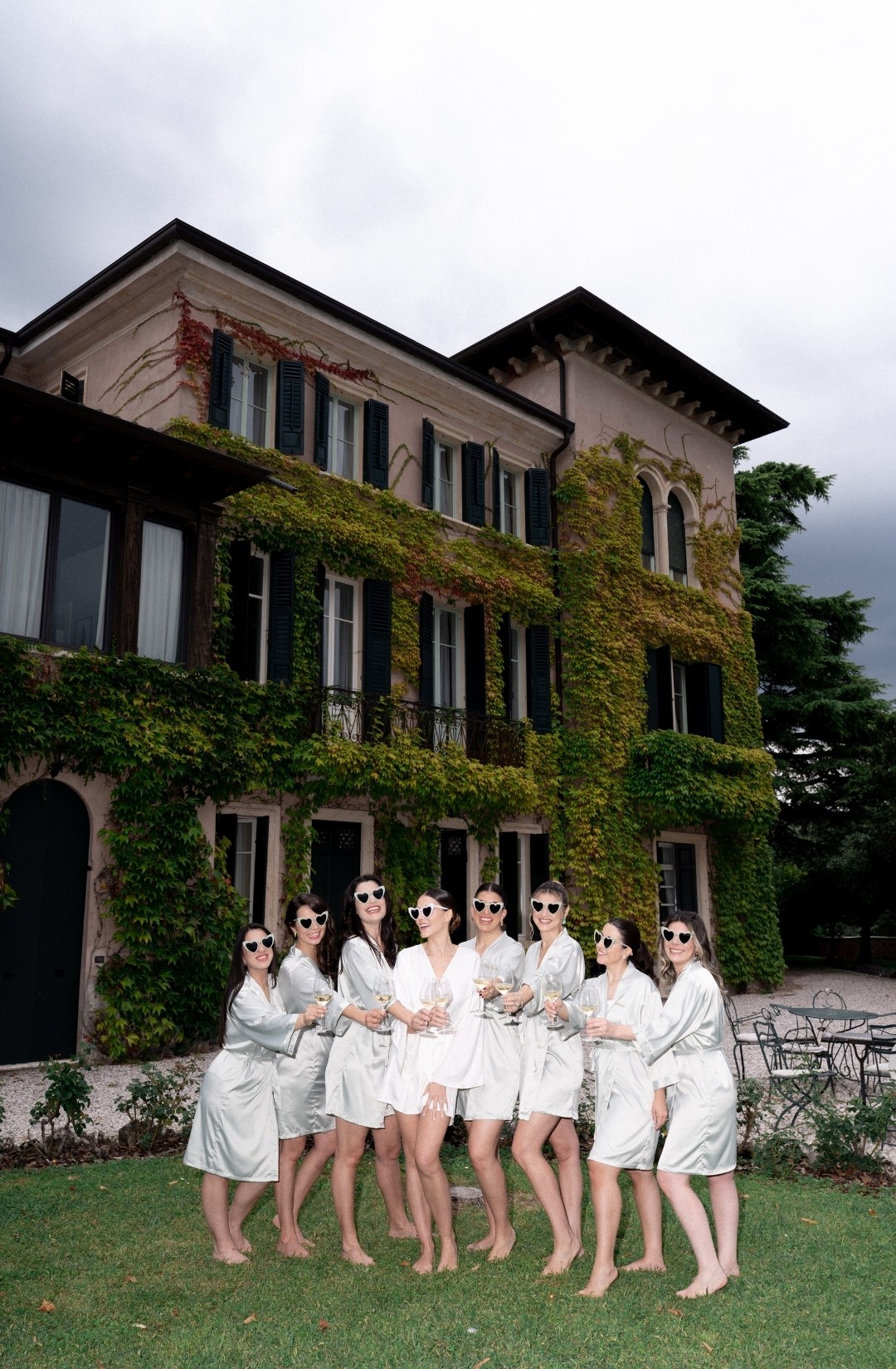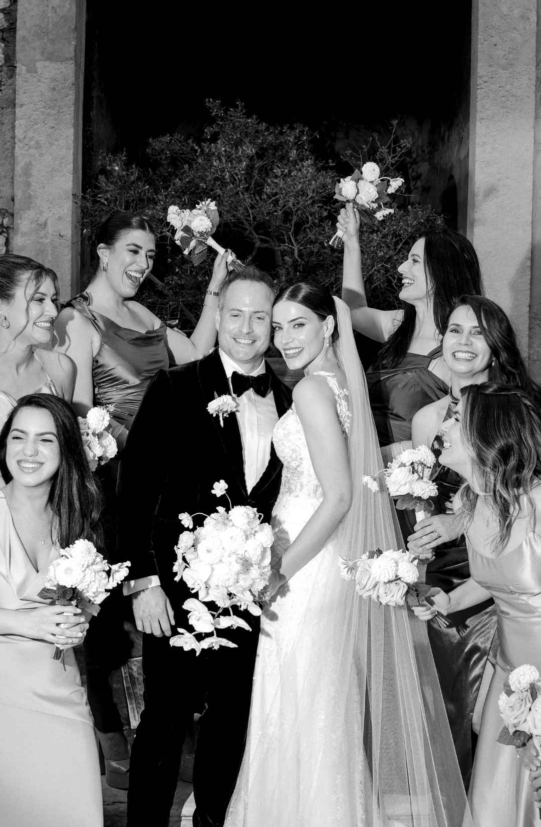 The couple, elegant yet effortlessly warm, moved through the day with a natural ease that made every moment feel intimate. From the bridal morning filled with laughter and silk robes, to the ceremony set against the villa’s monumental façade, everything felt sincere, never staged.