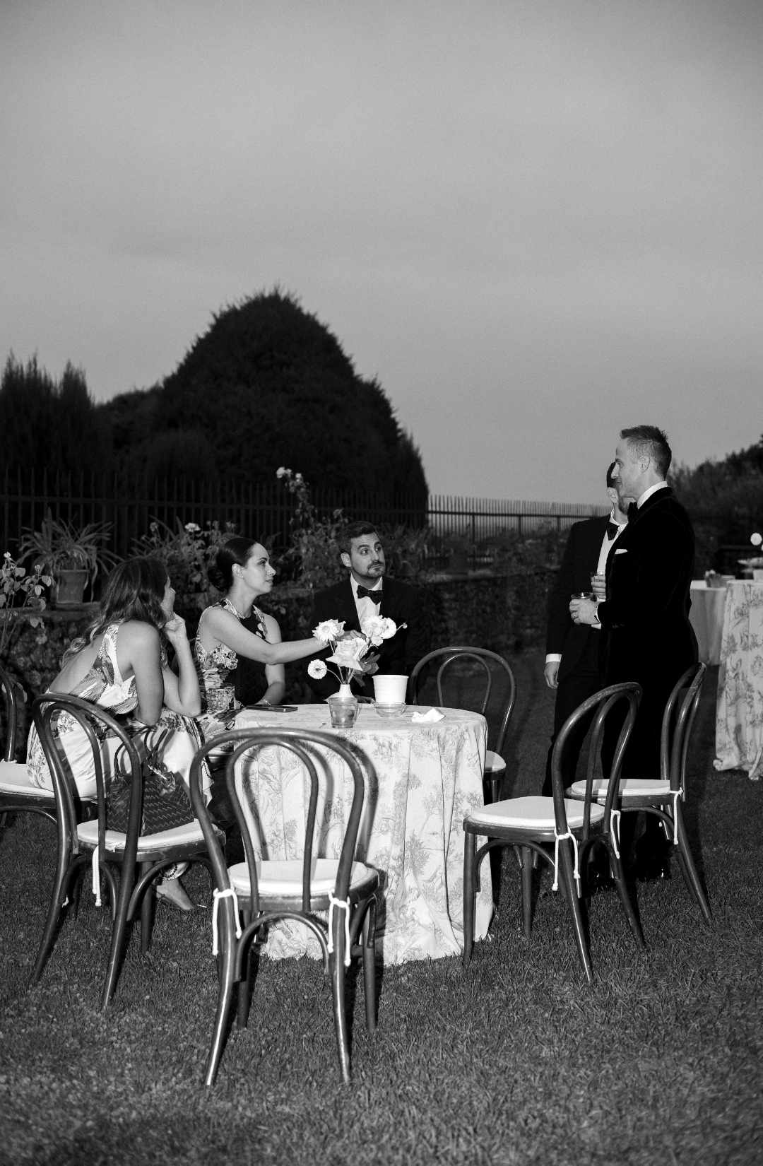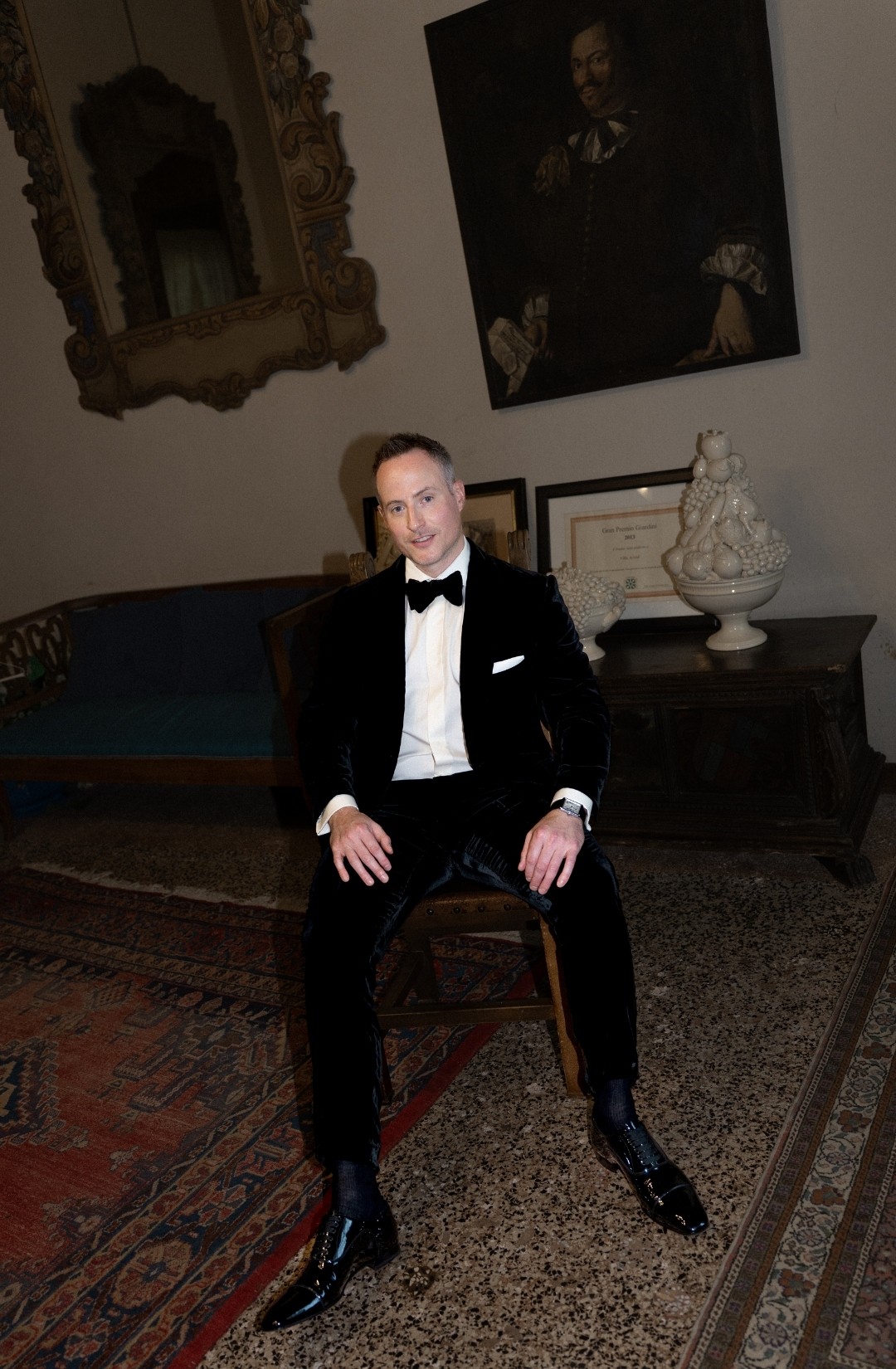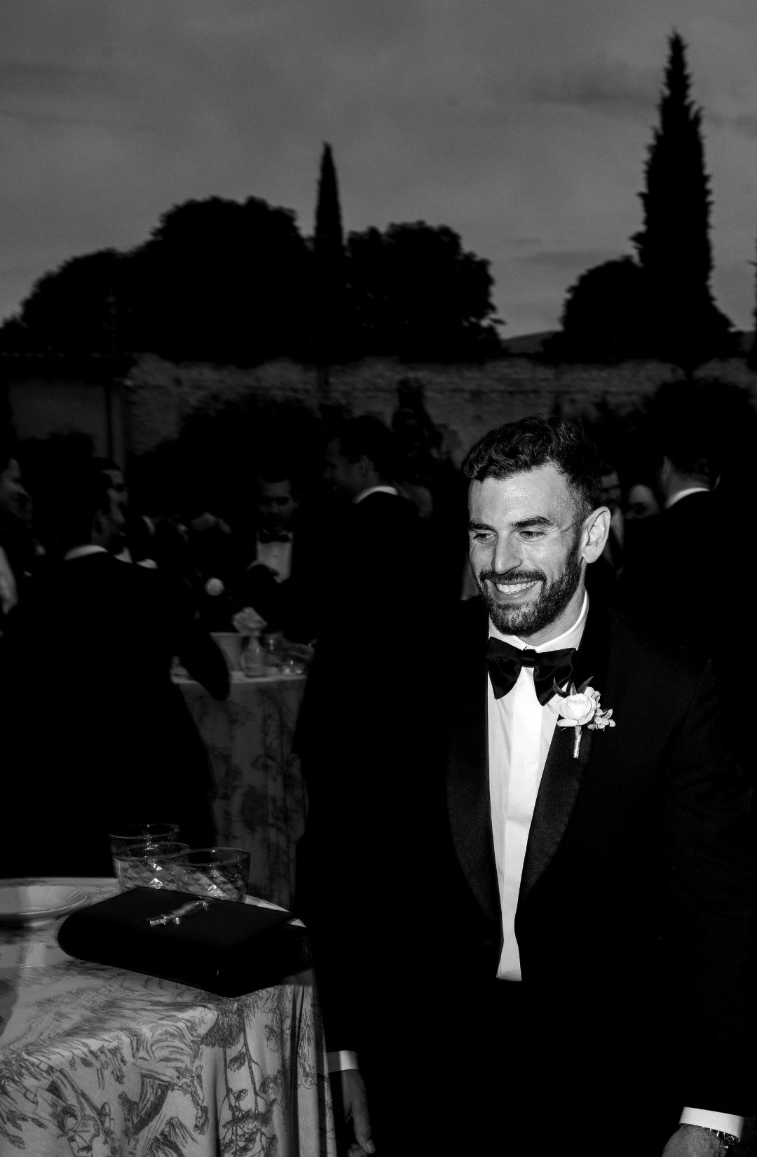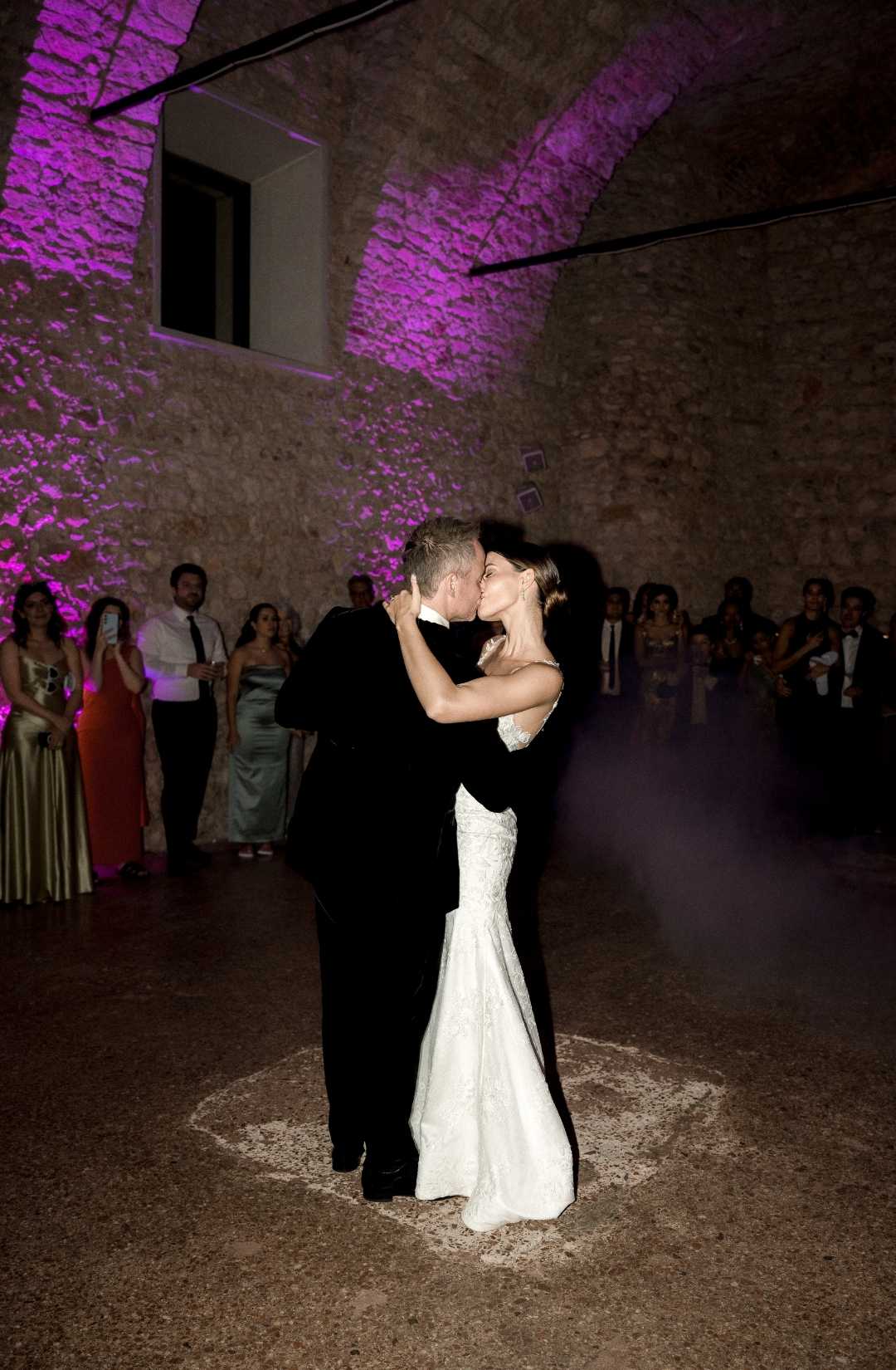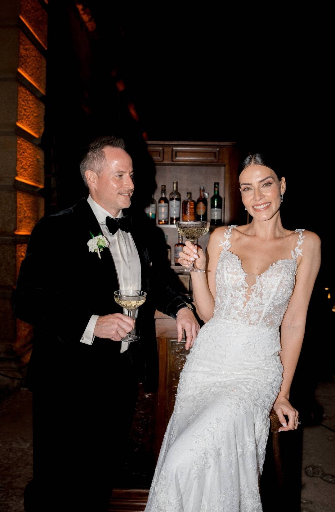 As evening fell, the villa illuminated in warm golden light. The façade glowed against the dark sky, and guests gathered in the courtyard as fireworks lit the night. It felt timeless. Iconic. Unmistakably Italian.